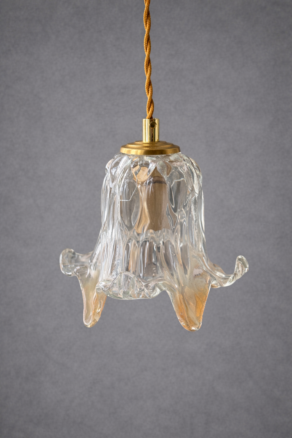 Née dans les années 60, cette suspension incarne une époque où le verre se faisait plus libre, plus expressif. Chaque pièce est ancienne, avec ses nuances, ses légères irrégularités, parfois quelques traces du temps — autant de signes discrets de son histoire et de son authenticité.