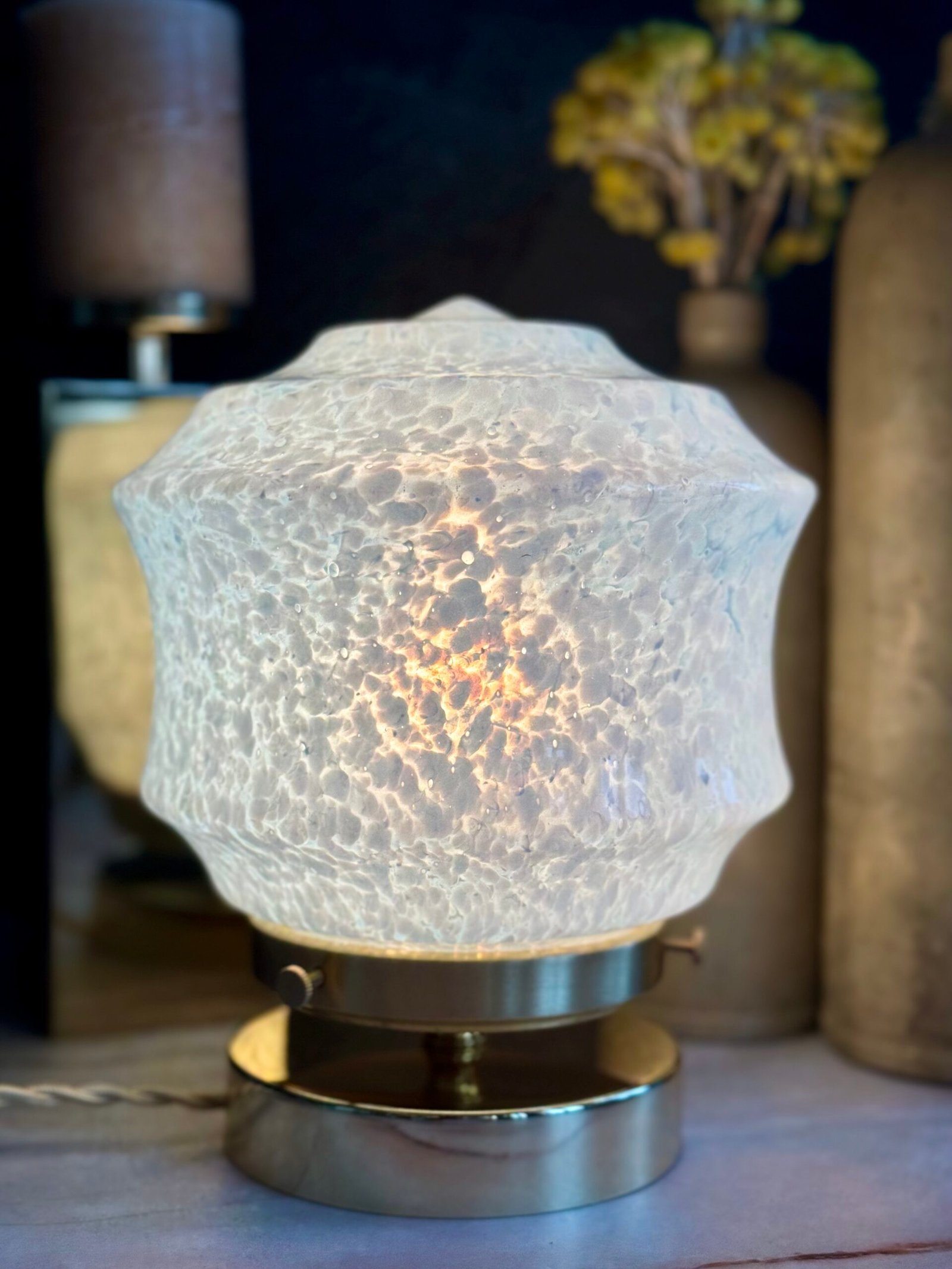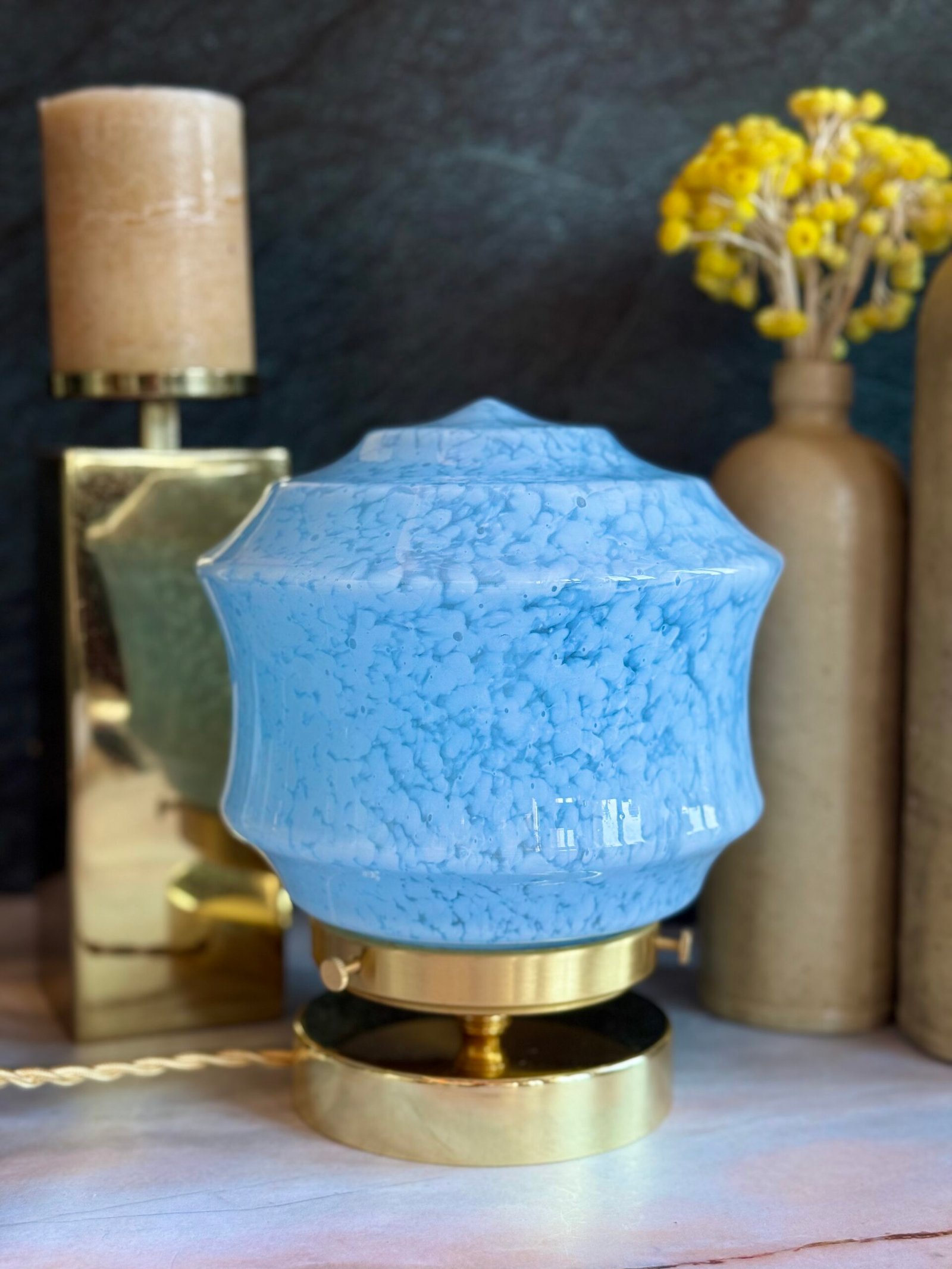 Remontée en lampe avec une base en laiton aux lignes sobres, cette pièce retrouve une présence contemporaine tout en conservant l’âme de son époque.