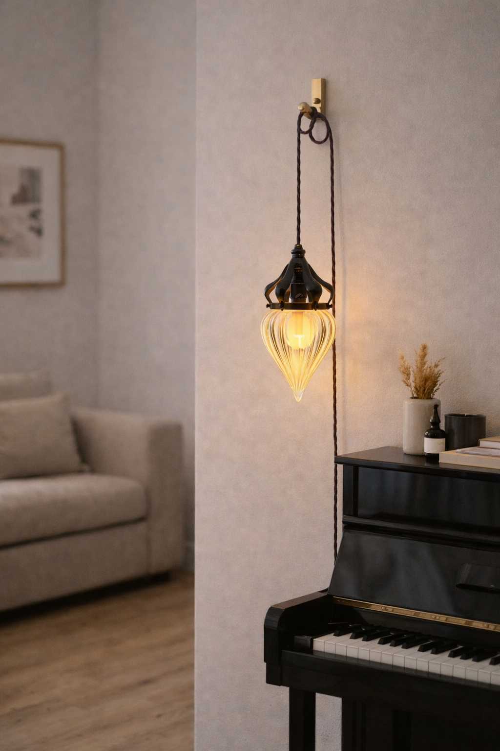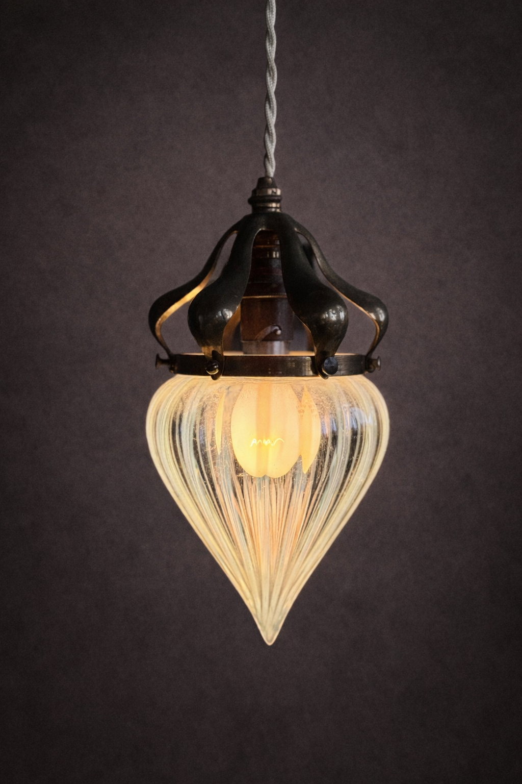 Montés aujourd’hui en baladeuses avec câbles textiles, ces globes retrouvent une nouvelle présence décorative tout en conservant l’esprit du luminaire dont ils proviennent.