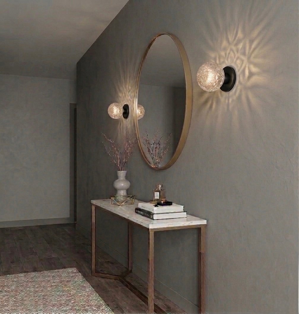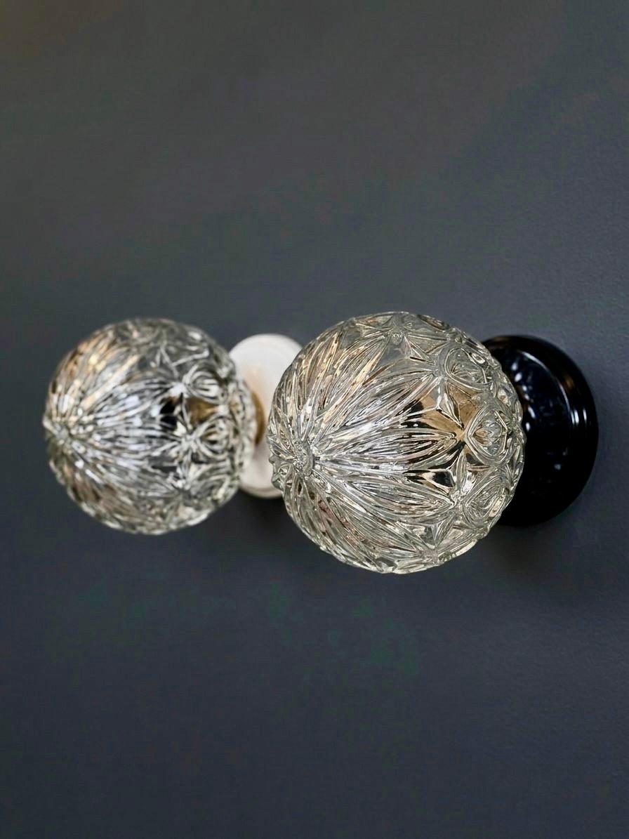 Comme des fragments de lumière capturés dans le verre, ces appliques évoquent des médaillons délicatement ciselés, où la matière devient ornement.
