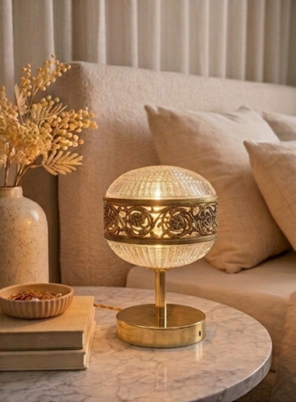 ✨ Une lumière précieuse enlacée de motifs anciens.